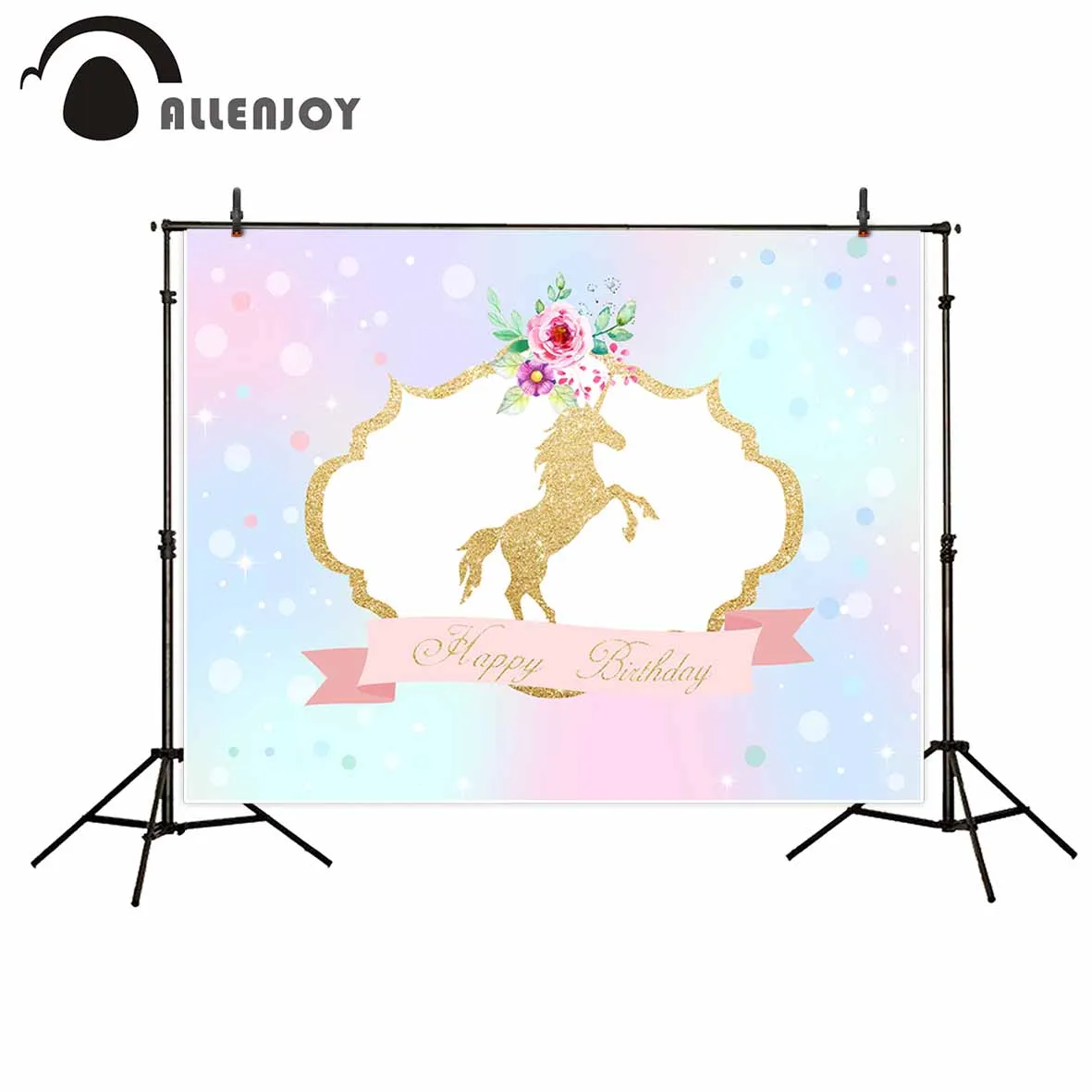 Us 9 45 32 Off Allenjoy Fotografi Latar Belakang Golden Unicorn Bunga Ulang Tahun Latar Belakang Gelembung Warna Warni Foto Latar Belakang Untuk