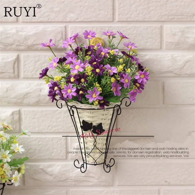 Us 23 19 1 Set Pedesaan Bunga Aster Dinding Mounted Putih Keranjang Plastik Bunga Buatan Rumah Pernikahan Pengantin Shop Dekoratif Palsu Bunga 7