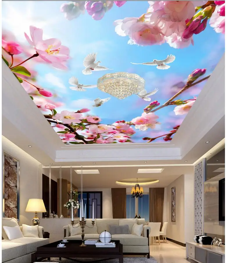 Us 27 86 Kustom Foto 3d Langit Langit Mural Wallpaper Bunga Sakura Biru Dan Merpati Putih 3d Mural Dinding Wallpaper Untuk Ruang Tamu Dinding 3d In