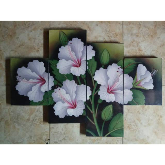 Lukisan Panel Bunga Kembang Sepatu Putih