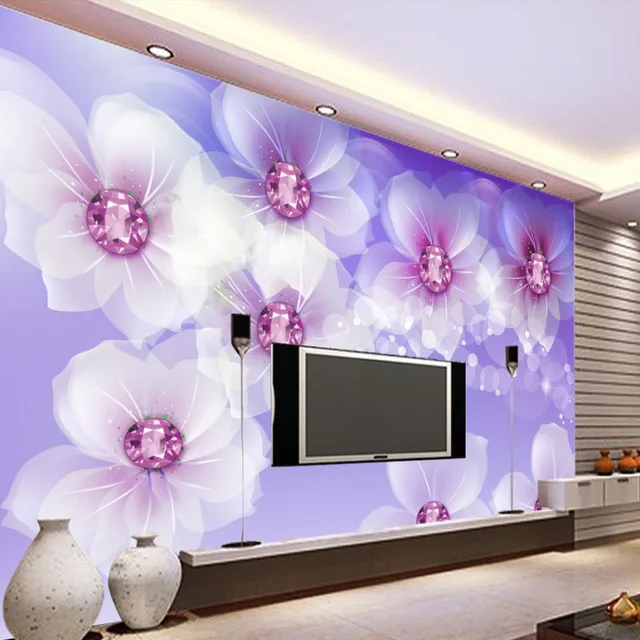 Us 11 78 20 Off 3d Foto Wallpaper Mulia Berlian Ungu Romantis Bunga Cafe Sofa Latar Belakang Televisi Bedroom Kantor Wallpaper Mural Di Wallpaper